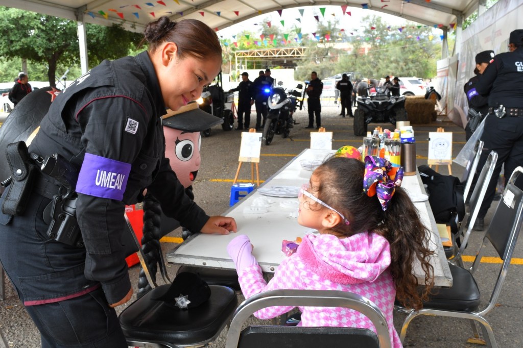 Este año, el stand de la SSPT contó con la participación de la Guardia Estatal de Género, cuyo personal ofreció dinámicas como juegos de preguntas y respuestas, boliche, aros de hula, pintacaritas y espacio de artes visuales.