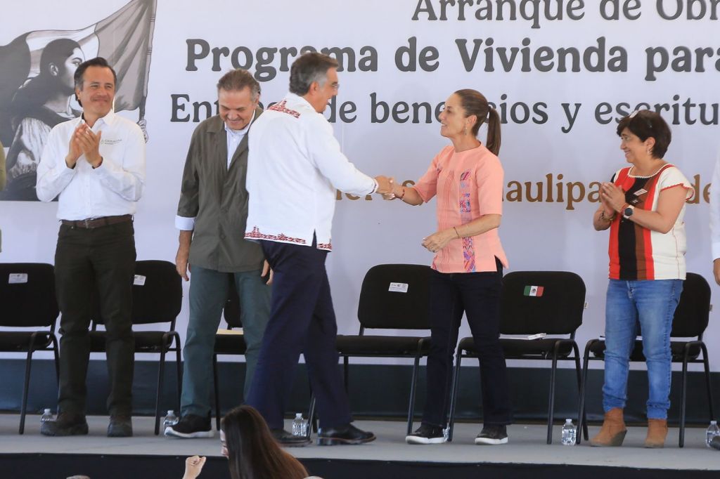 Al presidir el evento en el fraccionamiento Las Alamedas de esta ciudad, la presidenta de México hizo un reconocimiento al gobernador del Estado y destacó que Villarreal Anaya hace un gran trabajo por Tamaulipas. «Estoy muy contenta de estar en Matamoros, de estar en Tamaulipas. ¡Arriba Tamaulipas!», dijo.