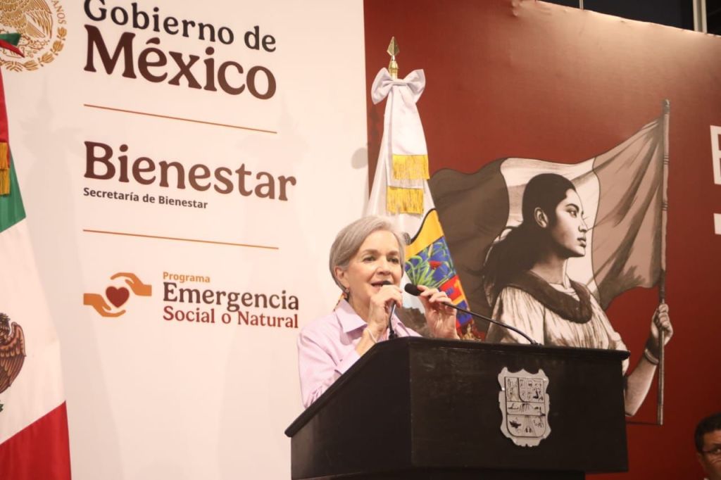 En el gimnasio «Las Liebres», la señora Blanca Núñez Longoria agradeció a nombre de las más de 1,600 familias afectadas por las lluvias en este municipio, el apoyo de Claudia Sheinbaum y de Américo Villarreal.