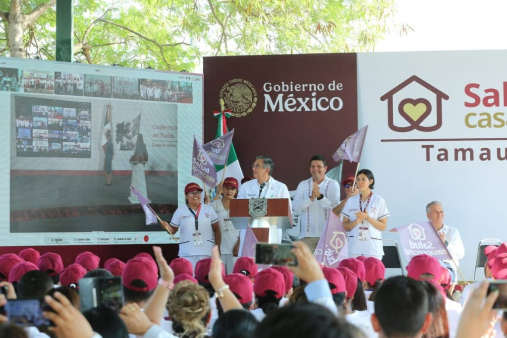 Ciudad Victoria, Tamaulipas.- En un enlace a la Conferencia del Pueblo, encabezada por la presidenta Claudia Sheinbaum, el gobernador Américo Villarreal Anaya inició en Tamaulipas el programa de Salud Casa por Casa, que cuidará el bienestar de 411 mil adultos mayores y personas con discapacidad en todo el estado.