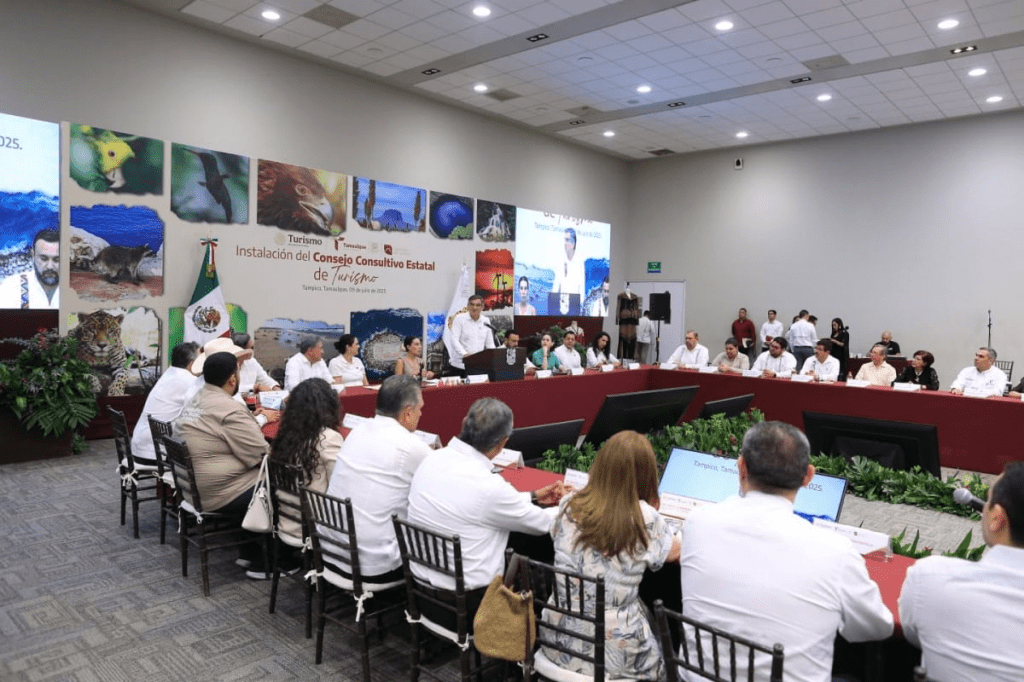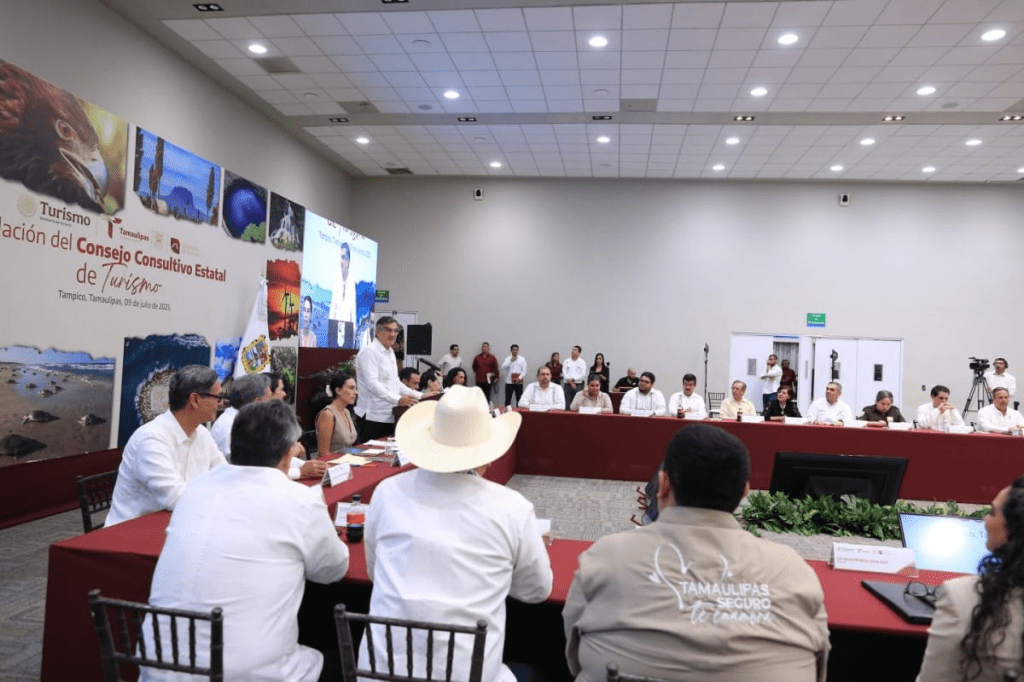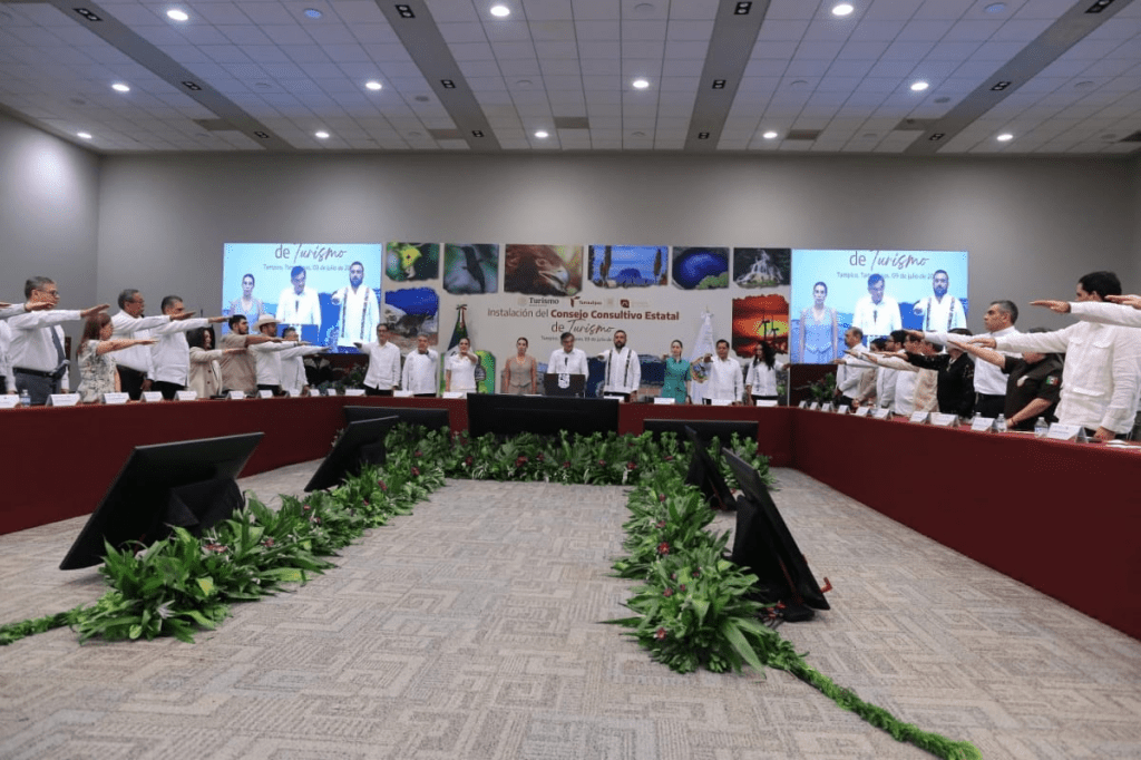 Tampico, Tamaulipas.- El gobernador Américo Villarreal Anaya presidió la instalación del Consejo Consultivo Estatal de Turismo y, ante la presencia de la secretaria Josefina Rodríguez Zamora, reiteró el compromiso para alinear el potencial turístico de Tamaulipas y que las cifras e indicadores sigan mostrando crecimiento y prosperidad.