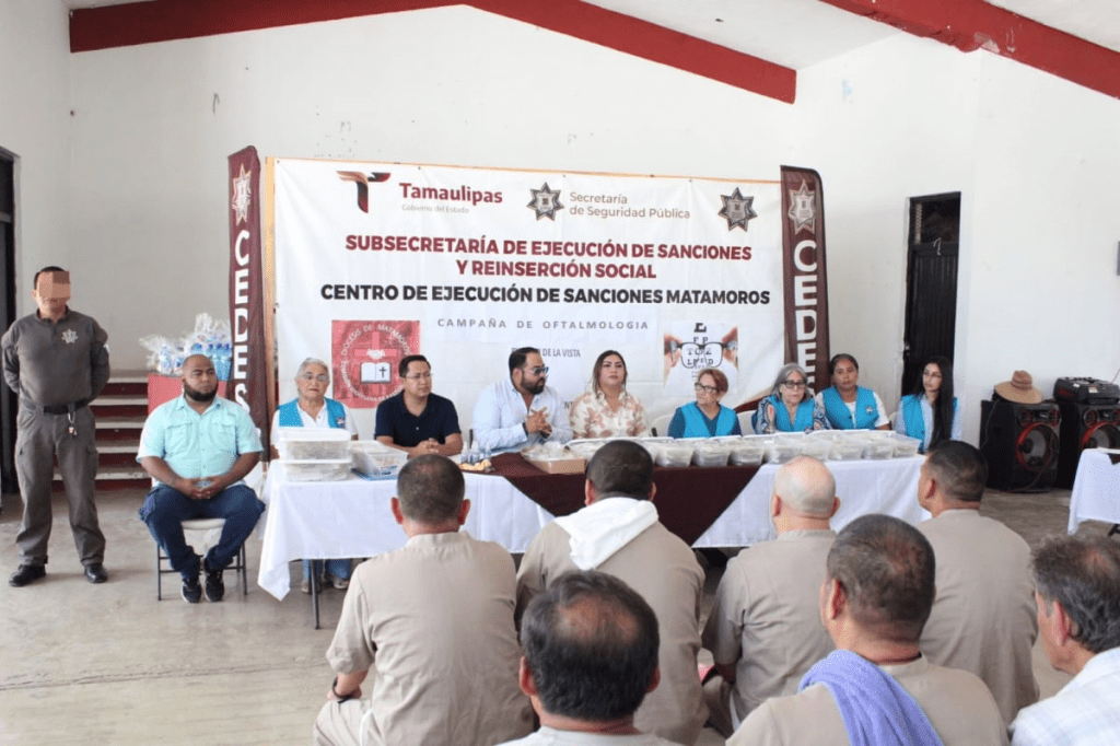 Matamoros, Tamaulipas.- Un total de 160 Personas Privadas de la Libertad (PPL) del Centro de Ejecución de Sanciones (CEDES) de Matamoros, fueron beneficiadas con exámenes de la vista y lentes con graduación, como parte de una campaña oftalmológica en coordinación con la Diócesis de Matamoros.