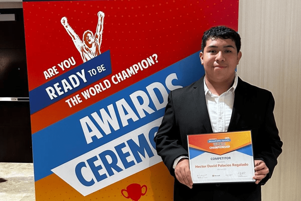 Explicó que la edición número 23 de este campeonato mundial reunió a 190 de los mejores estudiantes de entre 13 y 22 años, provenientes de más de 80 países, donde Héctor David compitió en la categoría de Excel (Office 2019), destacándose como el único representante mexicano en el Top 10 global.