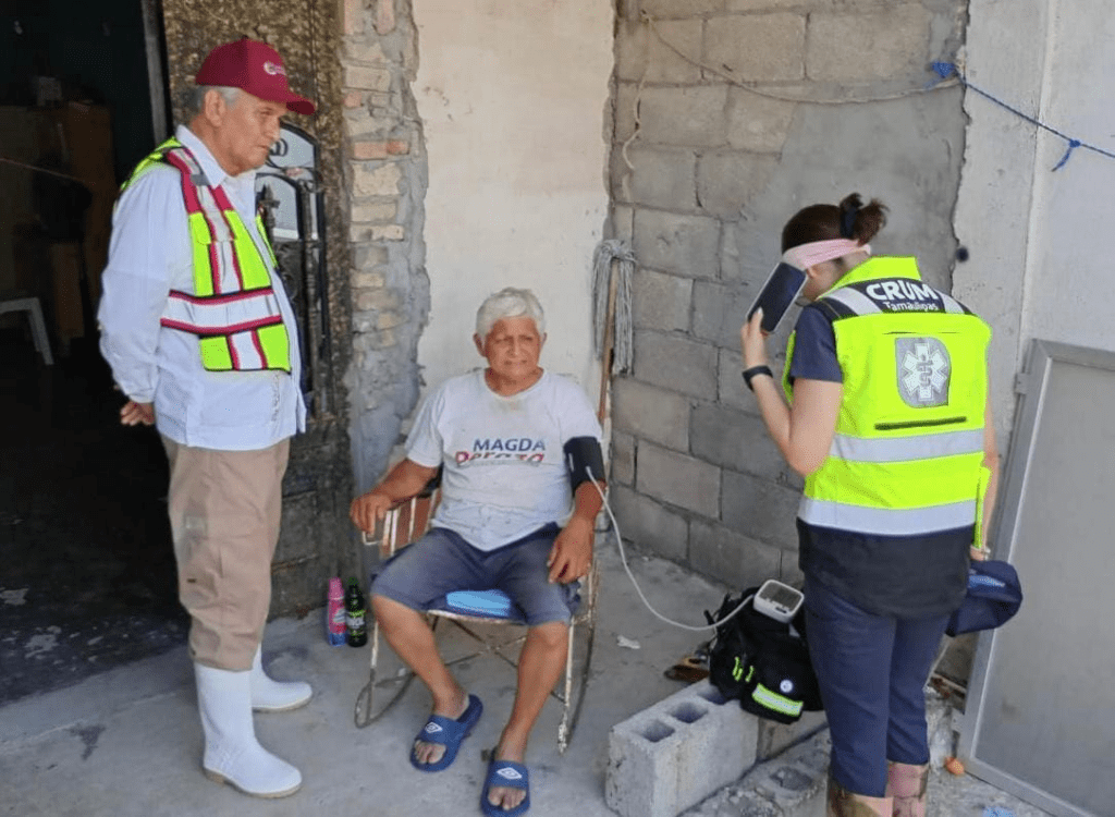 Con el apoyo de los municipios y acompañado por el personal de Epidemiología, Vectores, Promoción de la Salud, COEPRIS, Primer Nivel de Atención y el Centro Regulador de Urgencias Médicas de Tamaulipas (CRUM) y en coordinación con los integrantes del Comando de Incidencias de la Secretaría de Salud, este lunes se otorgó atención médica y prehospitalaria a los habitantes de la Colonia Vicente Guerrero, Sector Moscú, quienes resultaron afectados por las lluvias.